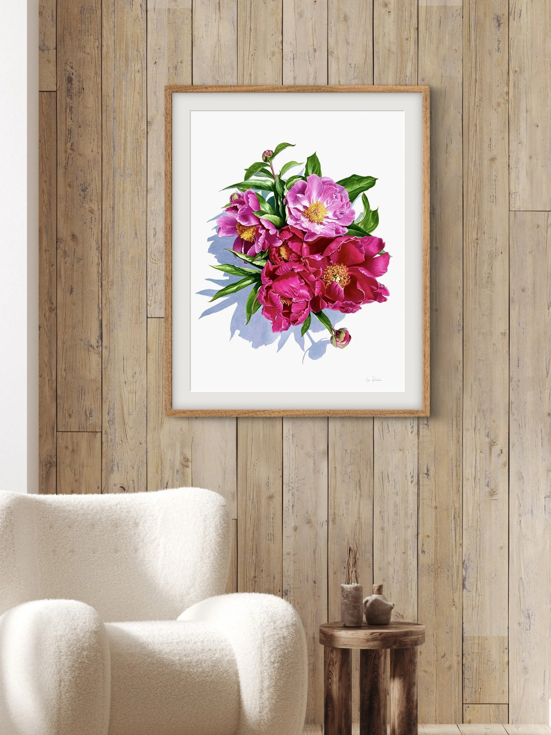This piece comes beautifully framed, floating under high quality non-reflective art glass, surrounded by a solid oak frame.